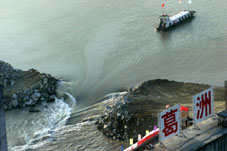 2002年11月6日9时50分,长江三峡工程导流明渠截流顺利合龙。这次截流是世界水利水电工程中综合难度最大的一次截流,但进展十分顺利,整个截流只用了40分钟。