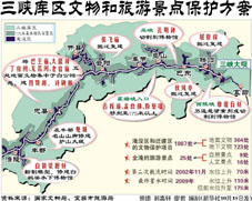 在众多的文物保护对象中,白鹤梁(著名的水下水文古迹)、石宝寨、张飞庙这三项因为涉及面广、保护困难而成为重中之重。如今,这三处著名文物都有了自己满意的归宿。其中,经过专家们长达9年的反复论证,被誉为“世界第一水文站”的白鹤梁将用一个透明的无压力容器罩罩在水下,游人可以通过水下通道参观白鹤梁题刻。这样就解决了保护与参观的两重难题。