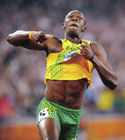 在本届奥运会上,身高1米96的博尔特,以令世界不可置信的速度在“鸟巢”里创造了两项被认为人类极限的世界纪录,把速度大战变成了个人表演的舞台。对于世界短跑界,他如同一条巨大的“鲇鱼”,随心所欲地颠覆着传统,将世界田坛搅得翻了天。赛后他说:“你们都觉得我破纪录容易,不!我觉得我是在游泳,我不断提醒自己,别被淹死!”