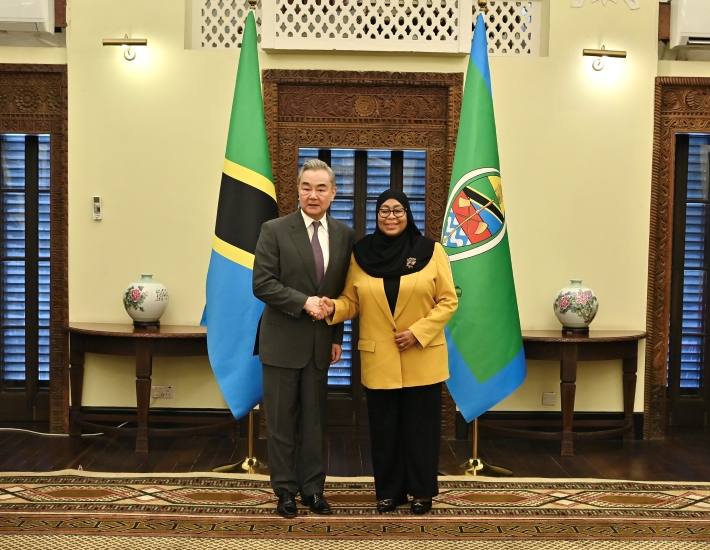 当地时间2026年1月10日,坦桑尼亚总统哈桑在达累斯萨拉姆会见中共中央政治局委员、外交部长王毅