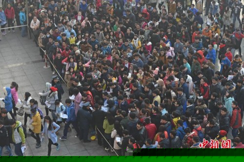 11月29日上午8时,距离2016年国考公共科目笔试开始还有1小时时间,北京市中关村中学双榆树校区的考点外已经聚集了大批等候进场的考生。中新网张尼 摄