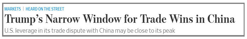 The Wall Street Journal noted this under the self-explanatory headline ‘Trump’s Narrow Window for Trade Wins in China’.