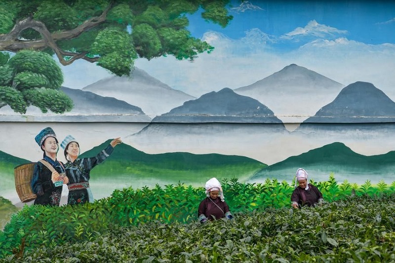Farmers pick tea leaves in Lianmeng Village of Pu'an County, southwest China's Guizhou Province, Feb. 23, 2023. Pu'an County has tea gardens with an area of about 125,000 mu (about 8,333.3 hectares). Local farmers have benefited from the tea industry. (Xinhua/Yang Wenbin)