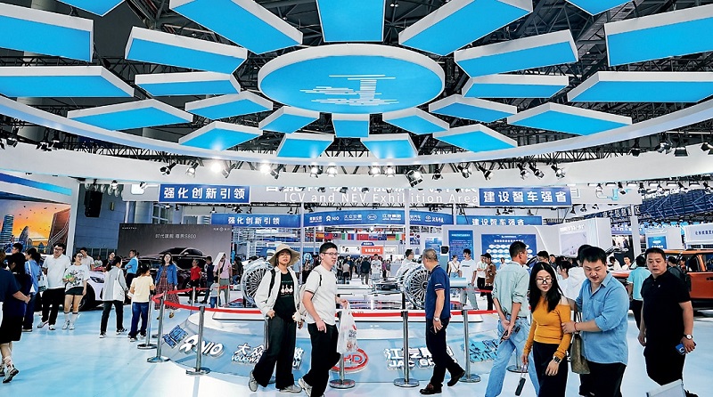 Visitors tour the Intelligent connected new-energy vehicle exhibition area at the 2025 World Manufacturing Conference on September 21, 2025.
