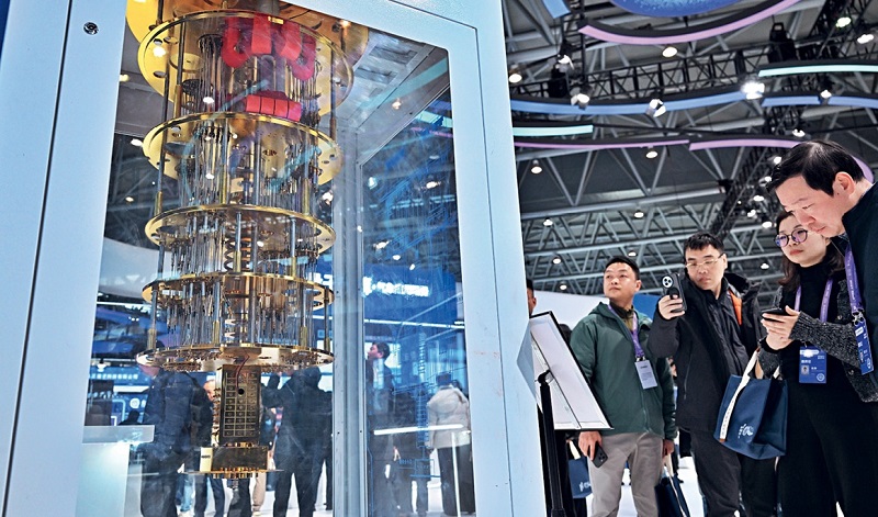 Visitors view a superconducting quantum computer at the quantum technology exhibition of the 2025 Quantum Technology and Industry Conference held in Hefei, Anhui Province, on November 20, 2025.