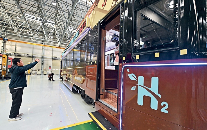 China’s first hydrogen-powered cultural tourism train – the “Qing Chun” – rolls off the production line in Changchun, Jilin Province, on October 16, 2025.