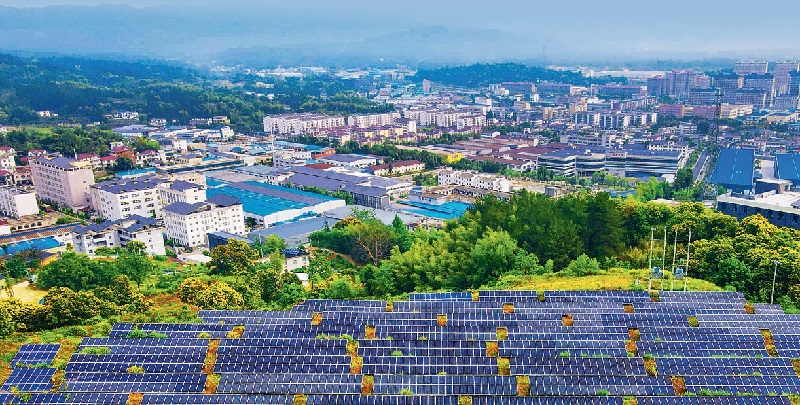 Rows of photovoltaic panels glitter under the summer sunlight as they continuously deliver clean energy in Tengyun Community of Lianyun Township in Yuexi County, Anhui Province, on June 4, 2025.