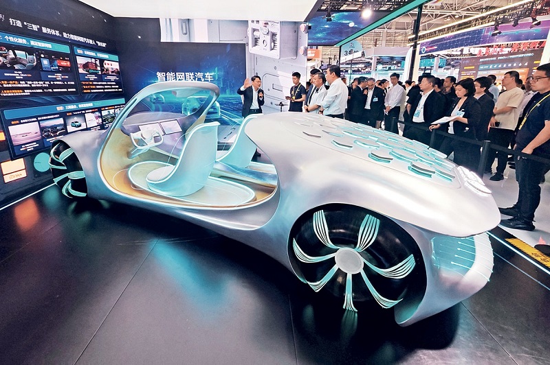 A concept car is exhibited at the 8th Digital China Summit in Fuzhou, Fujian Province, on April 28, 2025.