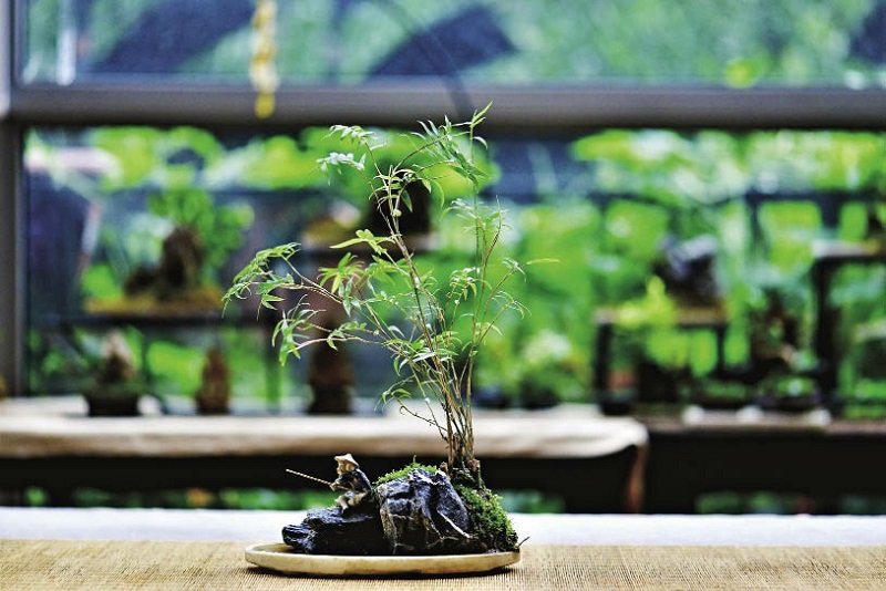 Every birth of a bonsai work follows the same steps: first an inspiration, then a passion for creation, creating an ingenious design, choosing materials, making the design, making slight modifications, and finally defining the final shape. Sometimes the process may only take a few hours to complete, but other times it might take a whole day, several days, or even several months. During the creation stage, Chad prefers to be alone. After making a bonsai, he loves to sit back and admire the beauty of every branch, leaf, stone, and every rockery while drinking a cup of tea.