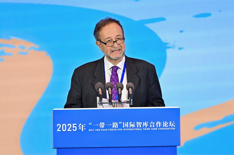 The author Augusto Soto speaks at the 2025 Belt and Road Forum on International Think Tank Cooperation.