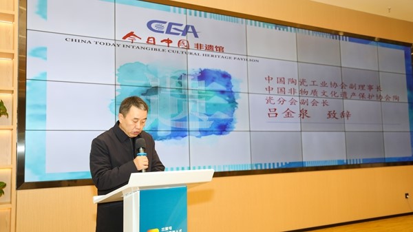 Lv Jinquan, vice president of the China Ceramic Industry Association, delivers a speech.