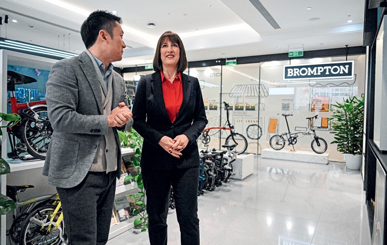 U.K. Chancellor of the Exchequer Rachel Reeves visits the Brompton flagship store in Beijing on January 11, 2025.