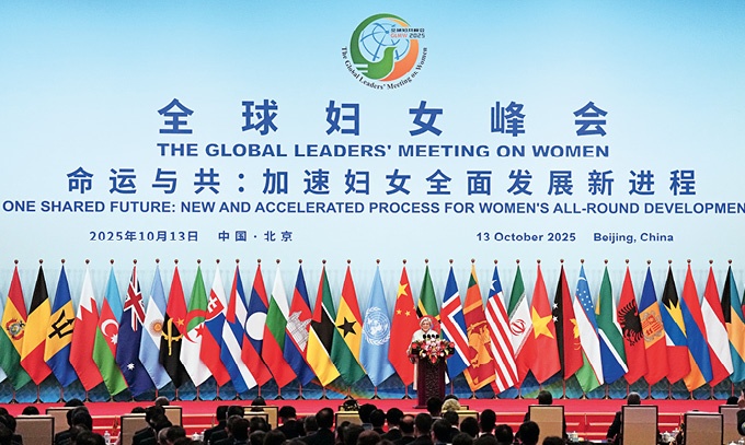 Under the theme “One Shared Future: New and Accelerated Process for Women’s All-Round Development,” the opening ceremony of the Global Leaders’ Meeting on Women is held in Beijing on October 13, 2025.