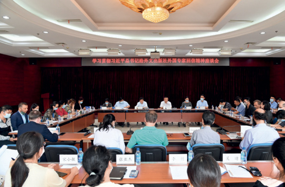 China International Communications Group convenes a seminar on September 9, 2022 for representatives and foreign experts from its related departments and subsidiaries to share their reflections about President Xi Jinping’s letter replying to foreign experts with the Foreign Languages Press.