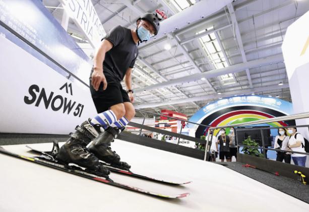 Le 4 septembre 2021, la zone d’exposition du parc Shougang au CIFTIS 2021 a ouvert ses portes au public. Dans la partie de la zone d’exposition consacrée aux sports, un visiteur a pu découvrir un simulateur de ski conçu en Autriche.