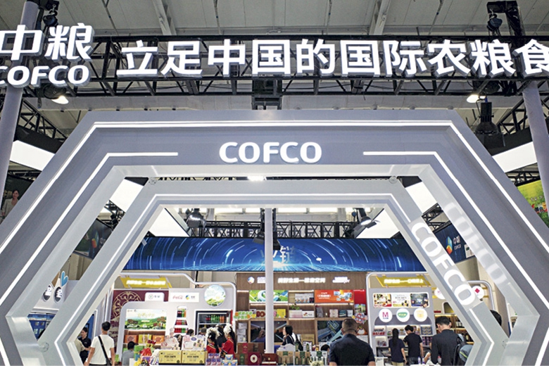 Stand du groupe COFCO à la Foire internationale du commerce des services de Chine, au Parc Shougang à Beijing, le 11 septembre 2025