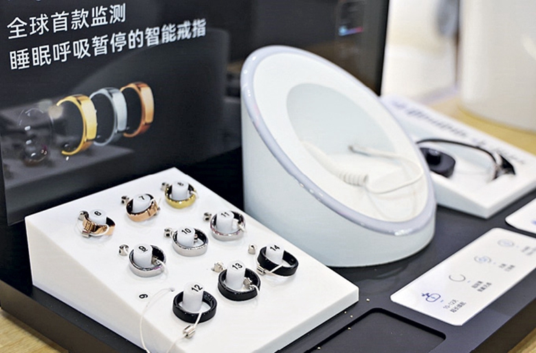 Bague intelligente pour surveiller l’apnée du sommeil sur le site de l’Exposition mondiale de l’industrie intelligente 2025 à Chongqing, le 7 septembre 2025.
