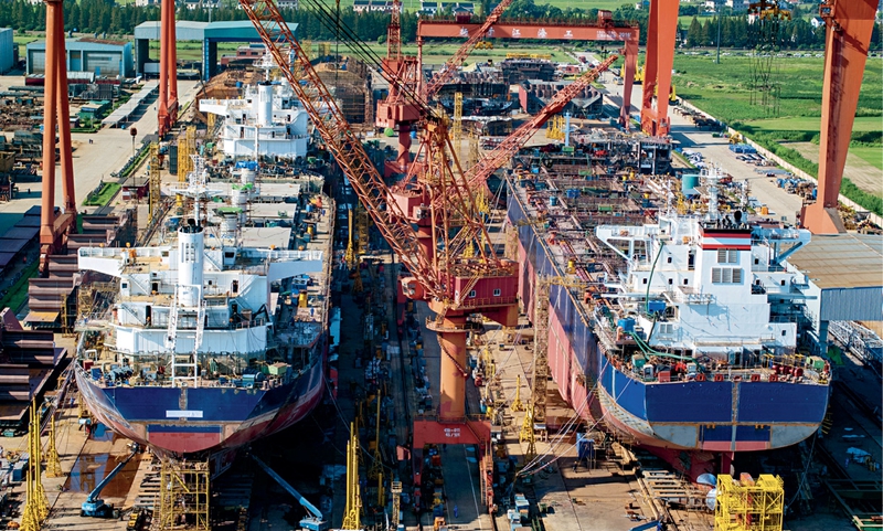 Chantier de construction navale dans la zone de développement économique et technologique du port de Taicang (Jiangsu), le 16 septembre 2025