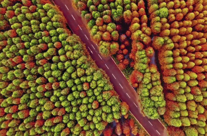 Au parc de la zone humide de Laoyuhe à Kunming, les sapins d’eau (metasequoia glyptostroboides) se dorent d’une teinte rougeâtre quand vient l’hiver. En plus d’embellir le paysage, ils contribuent à la biodiversité du lac Dianchi, puisqu’ils attirent un grand nombre de mouettes.
