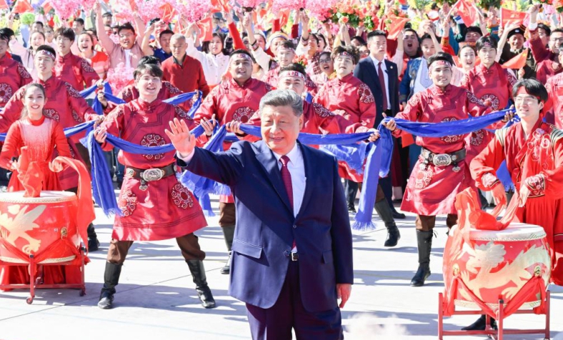 Xi Jinping assiste à un grand rassemblement célébrant le 70e anniversaire de la fondation de la région autonome ouïgoure du Xinjiang