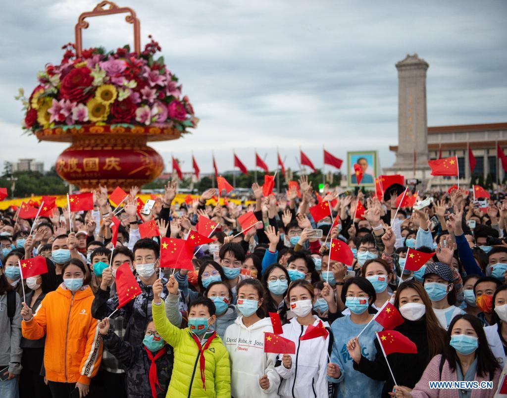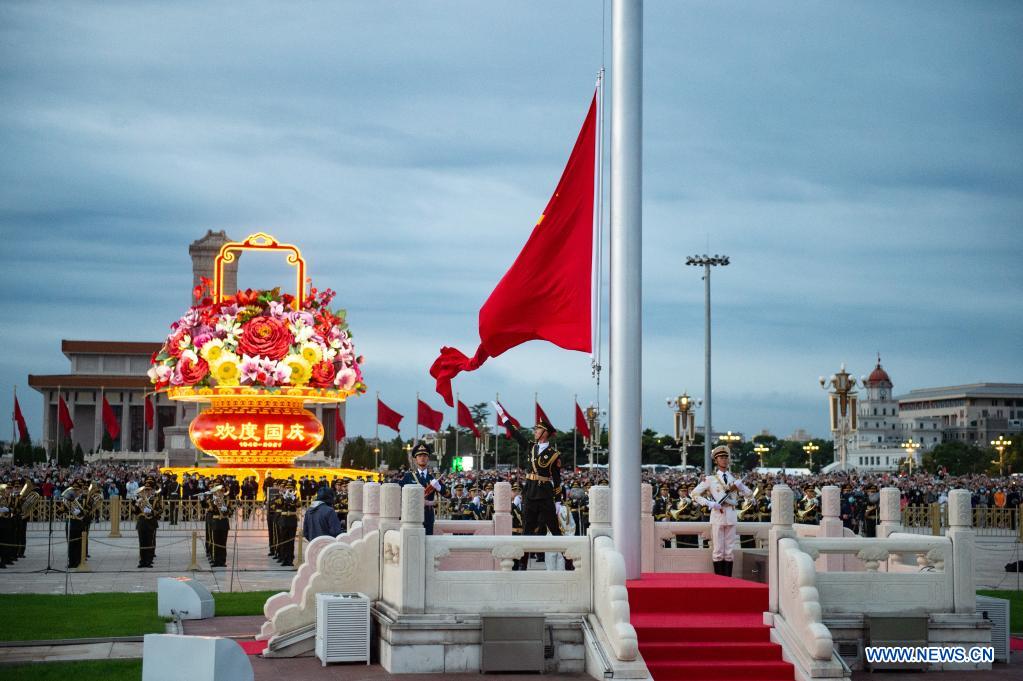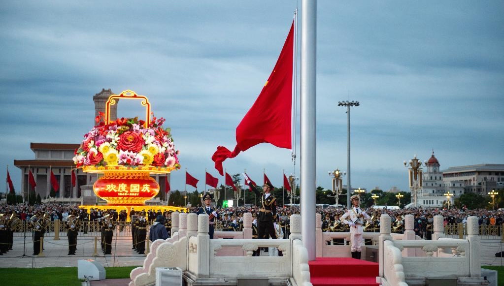 Une cérémonie de lever du drapeau national a eu lieu sur la place Tian'anmen à Beijing, capitale chinoise, le 1er octobre 2021, pour célébrer le 72e anniversaire de la fondation de la République populaire de Chine. (Photo : Chen Zhonghao)