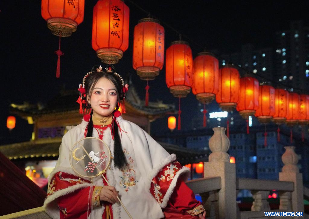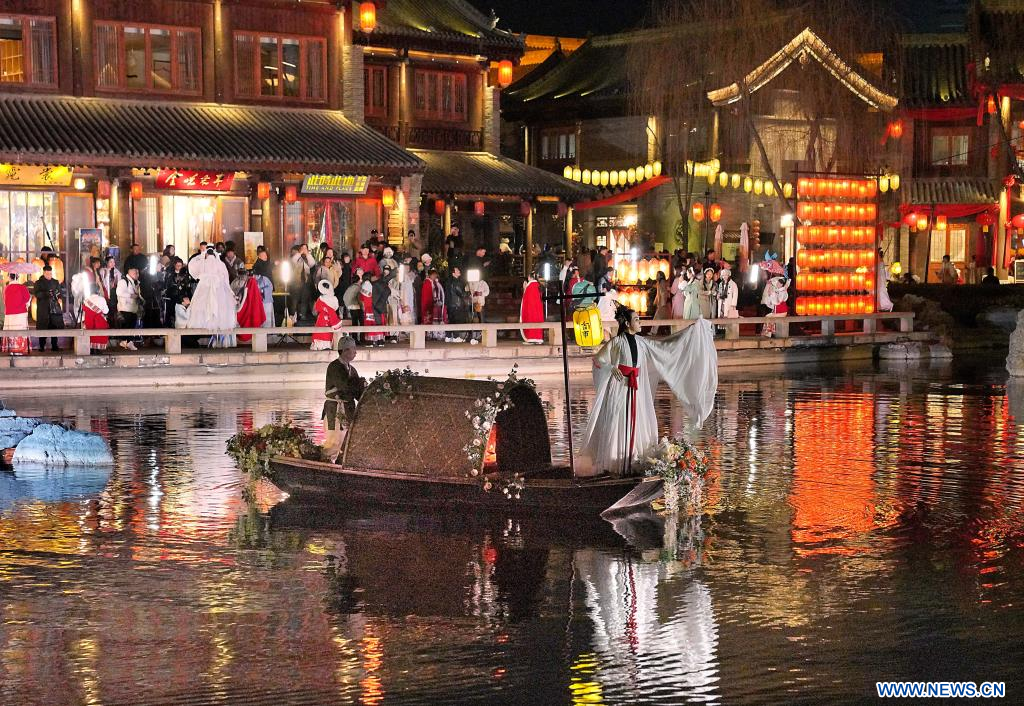 Des acteurs donnent un spectacle dans l'ancienne ville de Luoyi, à Luoyang, dans la province chinoise du Henan (centre), le 22 février 2023. Selon les données officielles, Luoyang a rapporté 10,31 millions de visites en janvier, pour des revenus de 6,28 milliards de yuans (environ 902,44 millions de dollars), en hausse de 746,63% et 690,06% sur un an respectivement. (Photo : Li An)