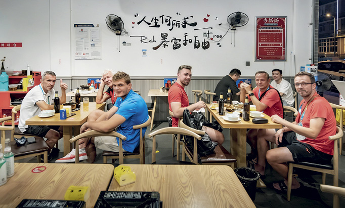 Des visiteurs étrangers dégustent des spécialités dans le quartier de Shiling durant la 31e édition des Jeux mondiaux universitaires d’été de Chengdu (Sichuan), le 31 juillet 2023.