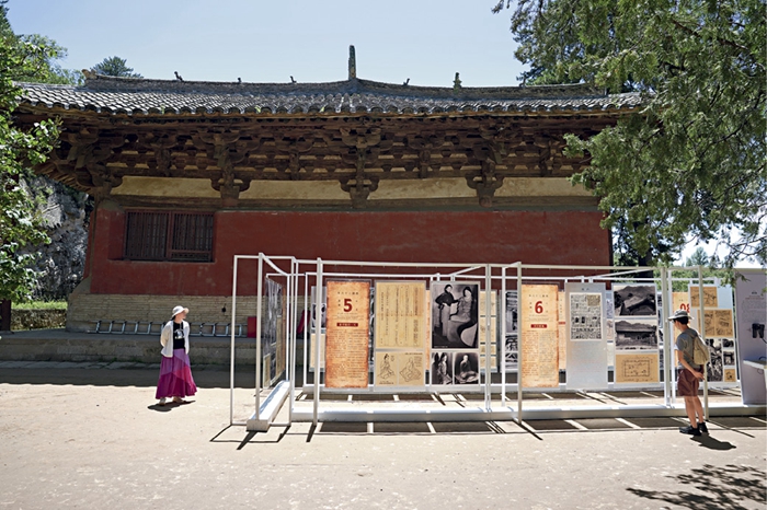 Des touristes visitent l’exposition « Recherche de la vérité - 1937 », dédiée au 88e anniversaire de la découverte du temple Foguang, le 6 août 2025.