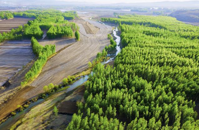 Vue panoramique sur le bassin de la rivière Laoha, dans le district de Ningcheng à Chifeng, le 2 mai 2021