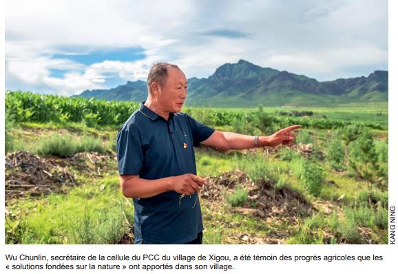 « Nous voulons développer une agriculture climatiquement intelligente grâce à des solutions fondées sur la nature (NbS), et en même temps résoudre les problèmes d’écologie et augmenter les revenus des villageois », précise M. Lin, ce qui signifie, selon la définition de l’Union internationale pour la conservation de la nature, « d’agir pour répondre de manière efficace et adaptative aux défis sociaux par la protection, la gestion durable et la restauration des écosystèmes naturels ou artificiels, et pour apporter des avantages au bien-être humain et à la biodiversité ». S’appuyant sur l’introduction et l’orientation des ressources mondiales et des technologies de pointe de TNC, ils ont mis en place des projets pilotes dans la région, avec notamment l’ajustement de la structure du secteur agricole et de l’élevage, la restauration des forêts et des prairies, la gestion écologique des rivières, la protection et la restauration des zones humides, ainsi que des conseils et une formation techniques en matière d’agriculture et d’élevage. À Xigou, ils ont dû persuader les villageois de changer leurs méthodes d’origine et d’adopter le double sillon avec paillis complet pour une plantation centralisée et continue. Le paillis sur les terres cultivées permet en effet de stocker les précipitations naturelles sous terre pour éviter leur évaporation. Dans le même temps, la construction de barrages de contrôle dans les ravines capables de retenir l’eau et les sols permet non seulement de conserver l’eau, mais aussi de protéger les terres cultivées.