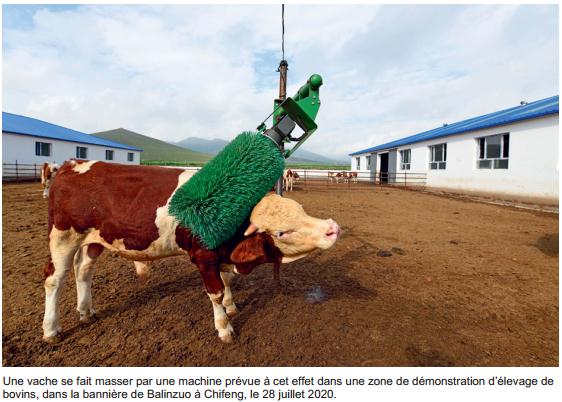 Dans « l’usine d’herbage frais » de la coopérative, Wan Fu, le responsable de la coopérative, montre le processus de fabrication : les graines d’avoine, d’orge et de blé pour l’alimentation animale sont traitées dans une serre spécialement conçue pour les cultiver et les convertir en semis avec de l’eau. En y ajoutant du fourrage, on en fait des aliments transformés pour les moutons et les vaches. « Cette méthode a permis de réduire les coûts d’élevage. On peut économiser environ 180 yuans par mouton sur une période de croissance d’environ trois mois », affirme Wan Fu, un berger mongol typique, qui précise que par rapport à la mise en pâture, on peut économiser aussi de la main-d’œuvre. Les avantages de ce nouveau type d’élevage étant visibles, le nombre d’adhérents à la coopérative est passé de sept au début à plus d’une trentaine. « Cela va certainement augmenter à l’avenir », prévoit Wan Fu, estimant que ce changement n’a pas été facile à réaliser pour les gens qui pâturent depuis des générations.