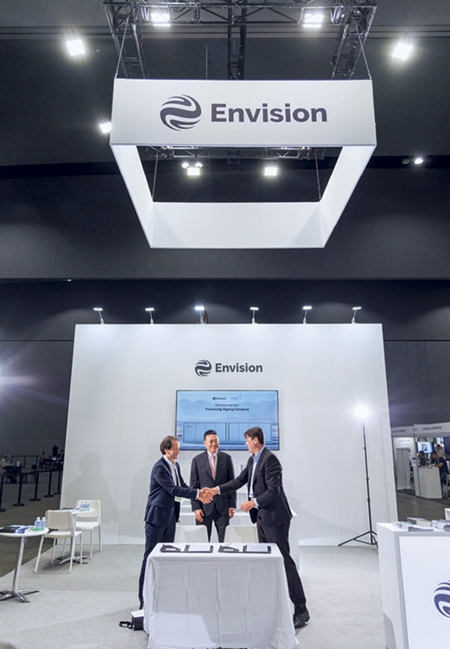 Signature d’un accord entre Envision Energy, société de solutions d’énergie renouvelable basée en Chine, et le développeur italien d’énergie renouvelable FERA Australia, pour un projet hybride éolien-stockage de 1 500 MWh, le 17 juillet 2025