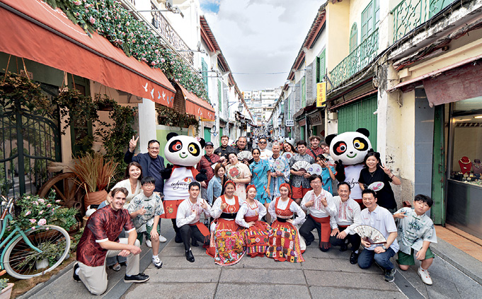 Des étudiants de l’Université du Nevada à Las Vegas visitent Rua da Felicidade, une attraction principale à Macao.