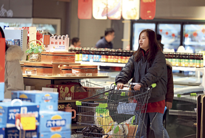 Des habitants font leurs courses dans un supermarché à Huai’an (Jiangsu), le 13 mars 2026.