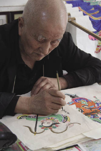 SOME say it was the Door gods that saved Li Fangfu and his studio in Mianzhu, Sichuan Province, from complete destruction in the 2008 Wen-chuan earthquake. Last representative inheritor of the venerable Mianzhu woodblock printing craft, Li Fangfu, now 83, and his workers have honored for decades this everyday deity through the woodblock prints they produce in Li’s studio.