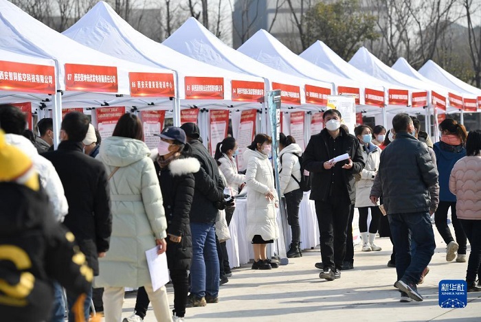 Eine Jobmesse im Kreis Zhouzhi in Xi'an, der Hauptstadt der nordwestchinesischen Provinz Shaanxi. (Foto vom 31. Januar, Shao Rui/Xinhua)