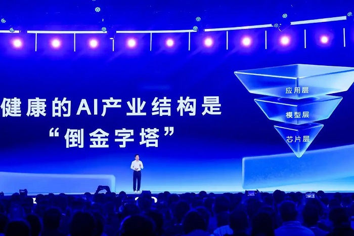 Li äußerte jedoch auch Kritik an der bisherigen Branchenstruktur, die er als „aufrechte Pyramide“ bezeichnete. Bisher habe die unterste Schicht – die Chips – den Großteil des Wertes abgeschöpft, während der wirtschaftliche Nutzen von Modellen und Anwendungen darüber abgenommen habe. „Diese Struktur ist ungesund und nicht nachhaltig“, so Li. Er rief dazu auf, dass die Modelle und die auf ihnen basierenden Anwendungen künftig mehr Wert generieren müssten.