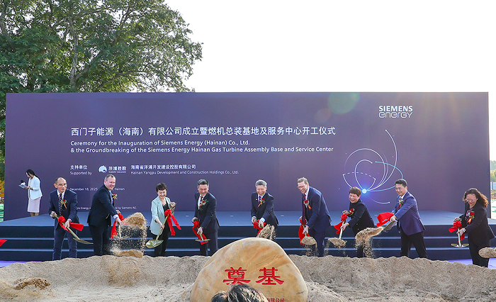 Grundsteinlegung am 18. Dezember 2025: Als erstes ausländisches Energieunternehmen richtet Siemens Energy eine Gasturbinenmontagebasis samt eigenem Servicecenter in der Yangpu-Entwicklungszone in Danzhou ein.