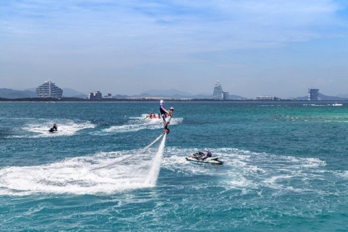 Paradies für Wassersportfans: Actionfreunde vertreiben sich rund um die Insel Wuzhizhou in Sanya die Zeit mit Flyboard und Jetski