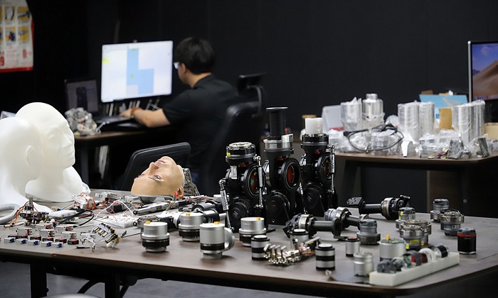 Roboter werden in einer Forschungs- und Produktionswerkstatt von EX Robots in Dalian in der Provinz Liaoning entwickelt und montiert (23. Juni 2025).
