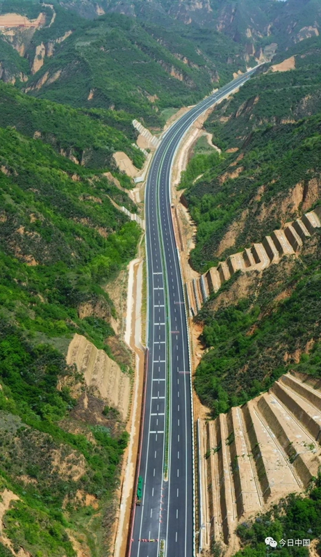 ▲ 穿行在崇山峻岭和黄土高原上的延黄高速公路。