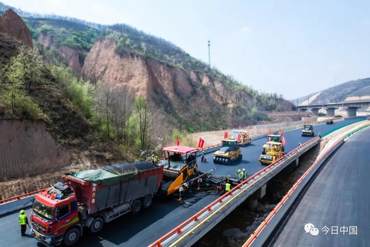 ▲ 随着最后一层沥青铺完,延黄高速公路即将迎来最后的通车时刻。