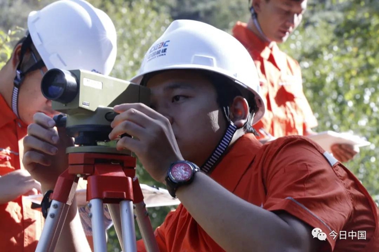 ▲ 每一段道路的测量,年轻队员都要协同配合。