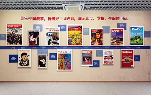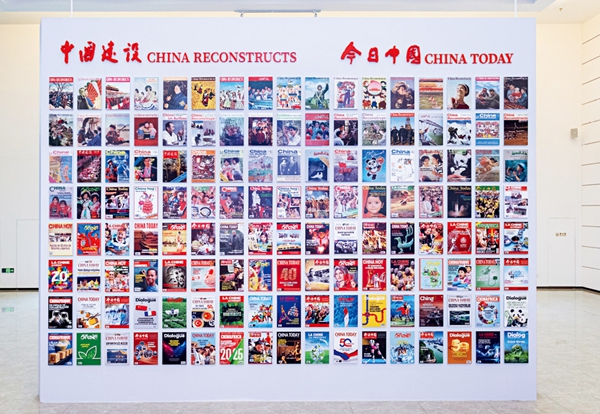 展览展出的从《中国建设》到《今日中国》各文版创刊号封面