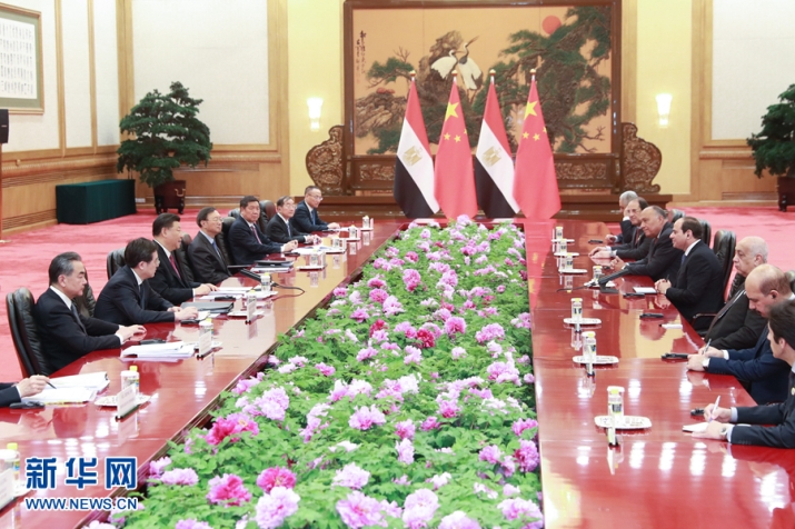 习近平强调,埃及是非洲联盟轮值主席国,总统先生来华出席第二届“一带一路”国际合作高峰论坛,不仅体现了埃及积极参与共建“一带一路”的真诚意愿,也代表着非洲国家寻求互利共赢、实现共同发展的普遍呼声。中方高度重视发展同埃及关系。双方要深化政治互信,继续在涉及彼此核心利益和重大关切问题上相互支持和配合。中方始终支持埃及探索符合本国国情的发展道路,愿积极参与苏伊士运河走廊开发计划,持续推进苏伊士经贸合作区建设及产能、基础设施建设等领域合作。中方还将在埃及设立“鲁班工坊”,向埃及青年提供职业技能培训。双方要深化反恐和安全合作,持续密切人文交流。中国感谢非洲人民对中国的信任,我们支持非洲和平安全与可持续发展倡议和非洲一体化进程,愿同埃方加强对非三方合作,共同促进非洲基础设施建设。