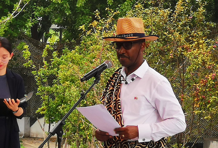 卢旺达驻华大使查尔斯•卡勇加发表讲话(《中国与非洲》记者夏媛媛 摄)