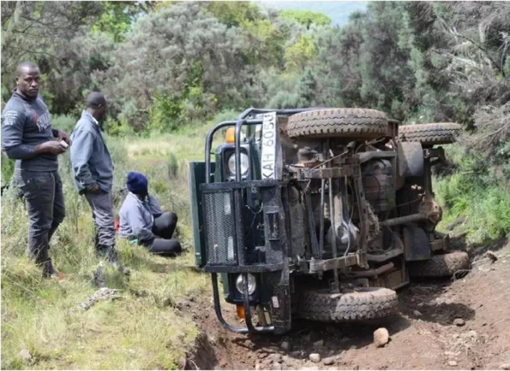 在非洲开展科研工作条件很艰苦,这是科研人员因路况差翻车的现场