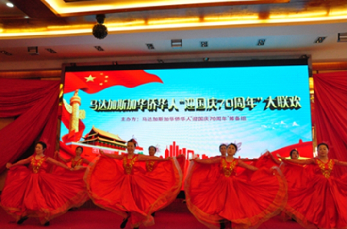 9月15日,马达加斯加首都塔那那利佛侨胞代表500余人欢聚一堂,举行庆祝新中国成立70周年大联欢。在激昂雄壮的《义勇军进行曲》歌声中,联欢活动拉开序幕。