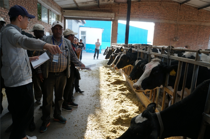 研修班官员参观肉牛养殖基地。(中国农业农村部国际交流服务中心提供)