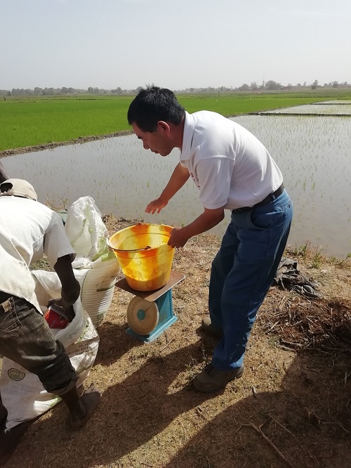 提起Pascal Zongo种水稻的故事,他说道:“在给中国水稻专家做翻译的时候,学到了一些技术和方法,并且看到了这些方法确实提升了水稻的产量,所以我租了半公顷水田,也尝试用新学的技术种植!”Pascal Zongo所说的水稻专家,正是首批中国援布基纳法索农业专家组的许金泽。